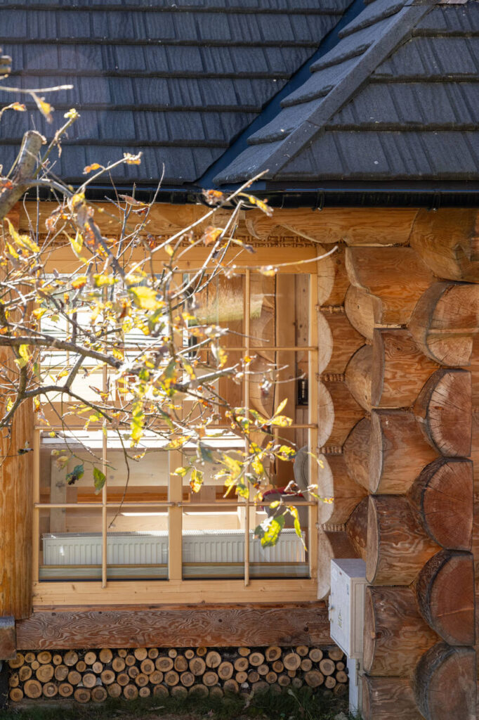 Cabins made of traditional wooden logs – a fireplace, natural wood, and the true spirit of Podhale.