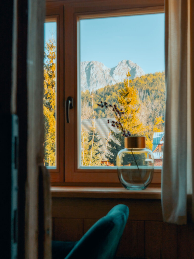 Away from the hustle and bustle, close to the forest. Giewont from the window, silence in the background.