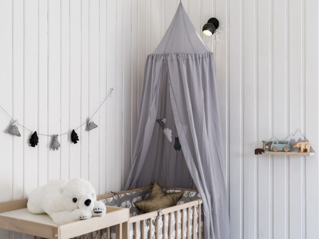 Thoughtful layout, bunk bed, crib, high chair — comfort for guests big and small.